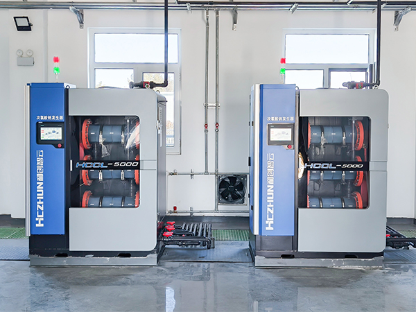 采用無隔膜電解法電解稀鹽水,在線制備低濃度次氯酸鈉溶液的裝置。具有原料易得、產(chǎn)物純凈、安全可靠的特點(diǎn)。適用于各類氯化消毒水處理。